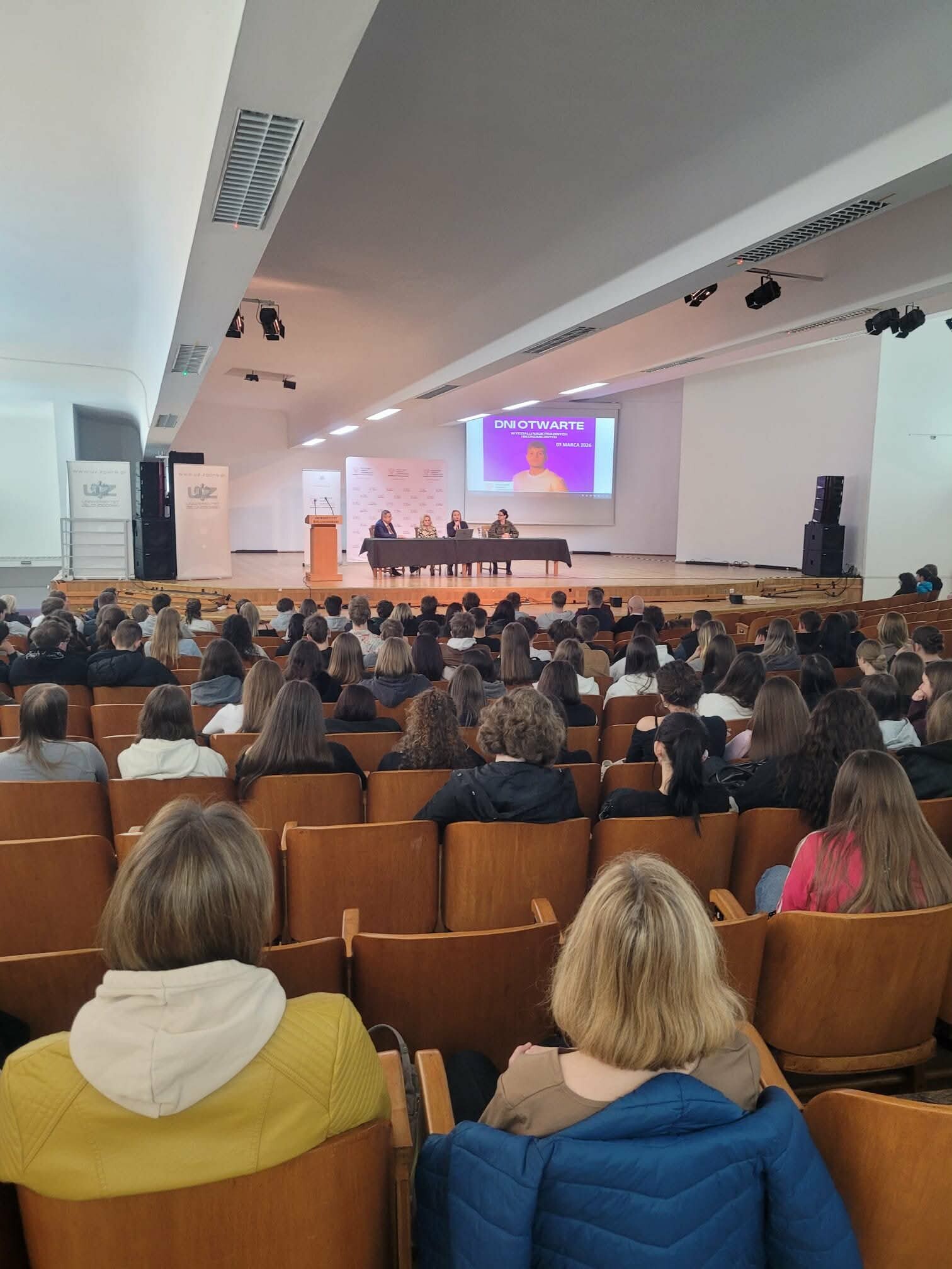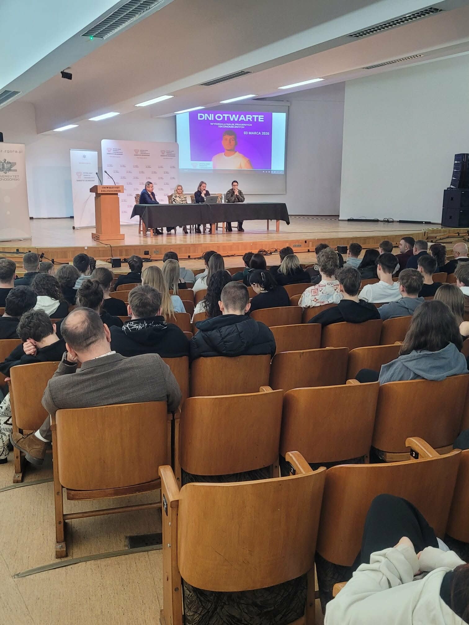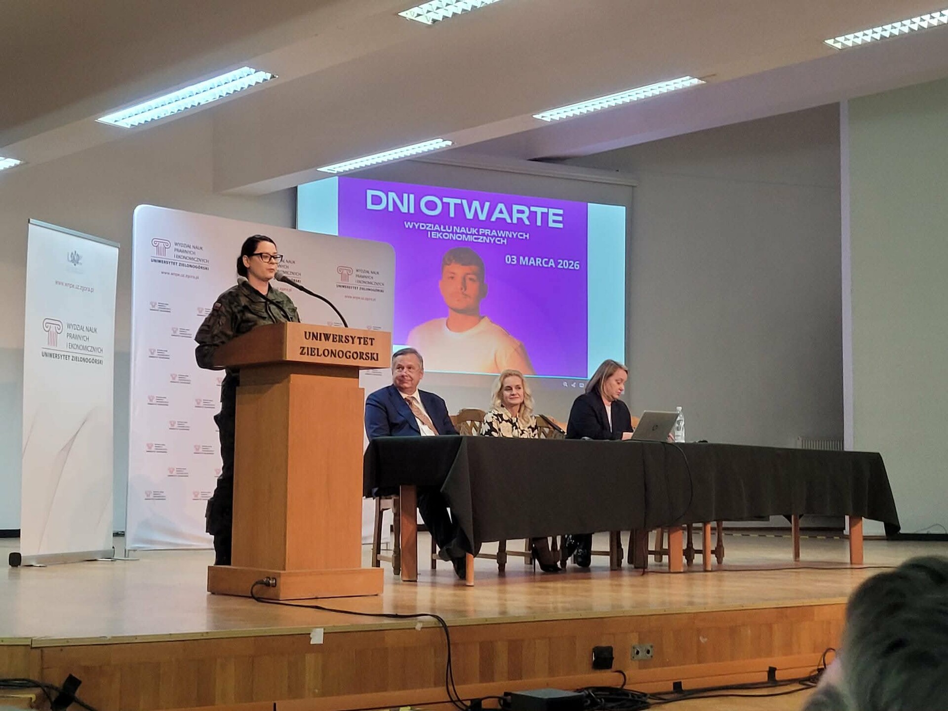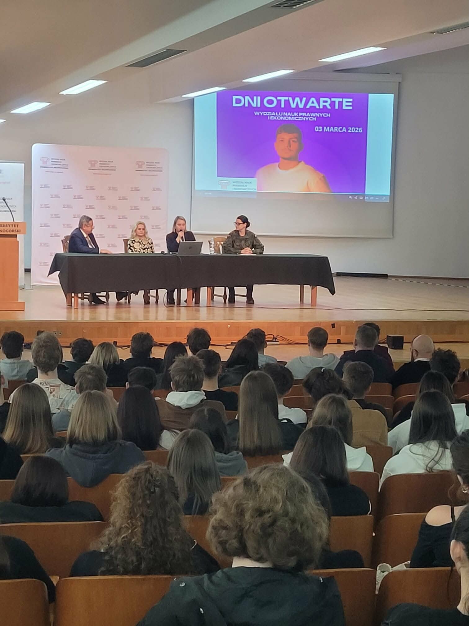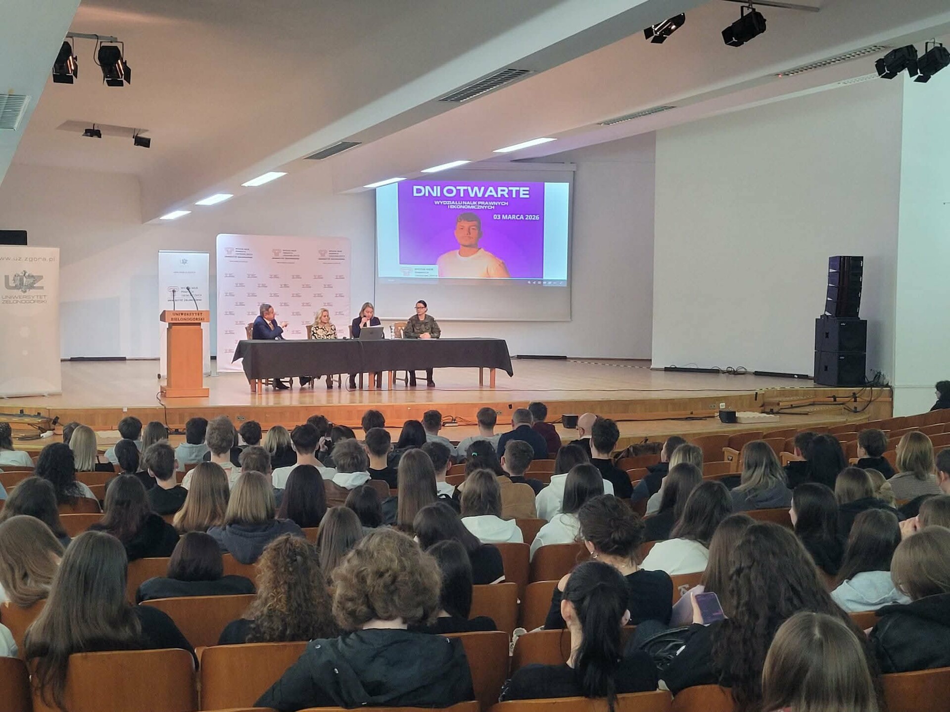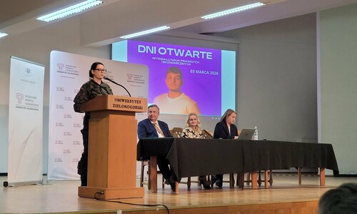 W dniu 03.03.2026 roku na Wydziale Nauk Prawnych i Ekonomicznych Uniwersytetu Zielonogórskiego odbyły się Dni Otwarte. Wydarzenie uroczyście otworzyli Pan Dziekan dr hab. dr h.c. Andrzej Bisztyga, prof. UZ wraz z Prodziekan dr hab. inż. Anną Saniuk, prof. UZ oraz dr Ewą Sobolewską-Poniedziałek.